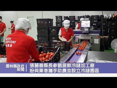 雲林縣政府積極推動建置冷鏈物流園區,縣長張麗善今(12)日一早到西螺鎮參觀展鮮農產生技公司新建冷鏈加工廠,由董事長鍾建展導覽介紹廠區作業流程。張縣長表示,展鮮長年與雲林番茄農契作,讓農民的收入非常穩定,這與縣府希望透過產銷均衡,讓農產品賣得好價錢,進而提高農民收入的目標一致,未來縣府將持續協助輔導各單位加強冷鏈設施設備,完成雲林縣冷鏈物流體系的建置,落實照顧農民。