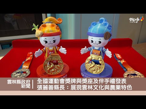114年全國運動會在雲林。縣府18日舉行「114年全國運動會獎座獎牌暨貴賓、隊職員伴手禮露出發表記者會」,展出團體獎獎座、獎牌、公仔與伴手禮。縣長張麗善表示,獎座、獎牌與公仔融合雲林豐厚文化底蘊與在地特色,與對選手最高敬意,展現全運會融合運動、土地、人文、觀光與永續的魅力美學。